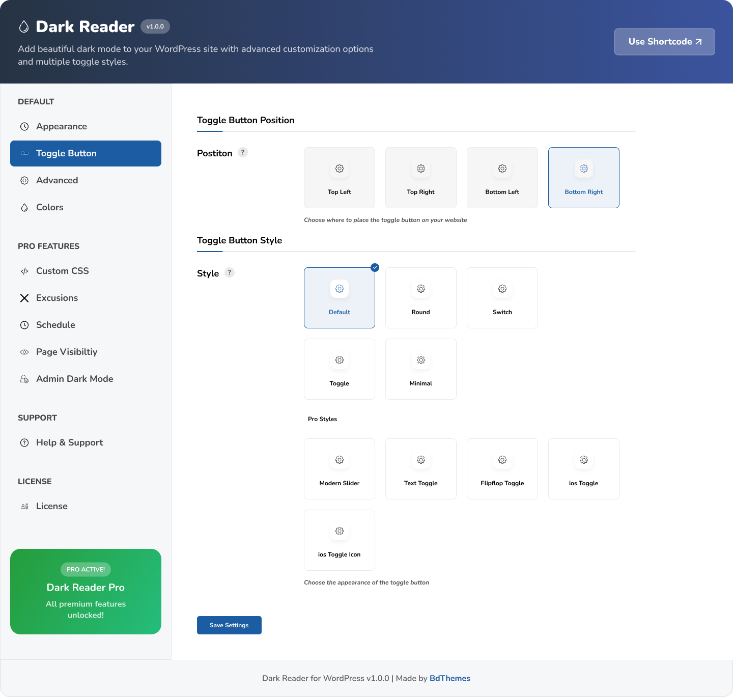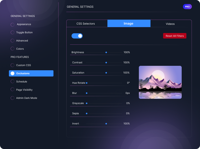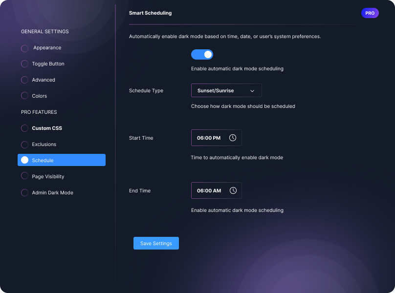 Enable dark mode based on fixed schedules, the user’s device theme, or natural light cycles. With threse smart options, Dark Reader Pro ensures a comfortable viewing experience for both day and night.